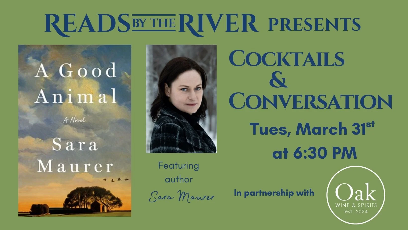 Join us at Oak Wine & Spirits (308 E. Main St, Waterford) on Tuesday, March 31, for our next event in our very popular Cocktails and Conversation series! We are excited to be welcoming author Sara Maurer to discuss her new novel, A Good Animal. During our Cocktails & Conversation events, guest authors share about their books, answer questions and sign their books for attendees.